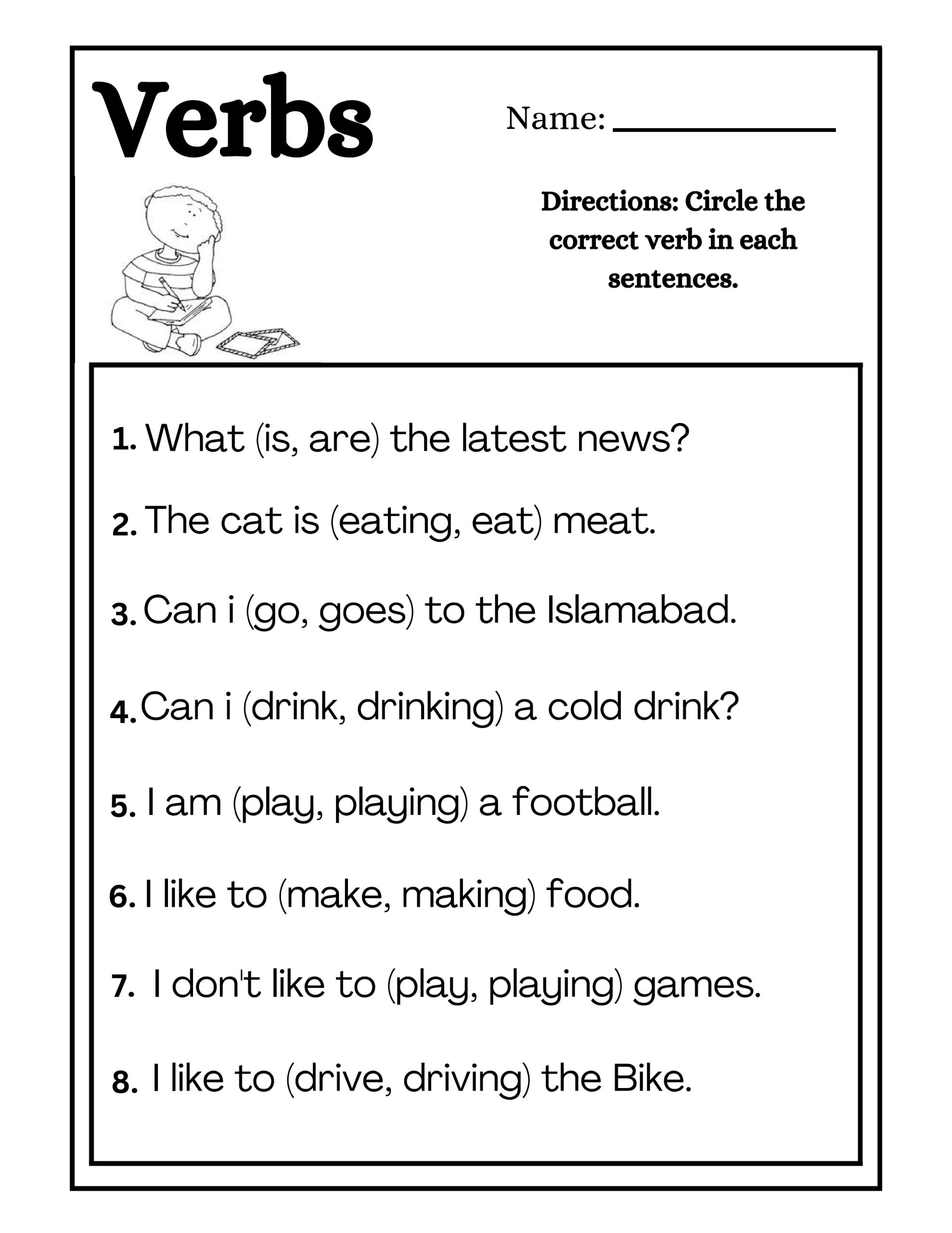 Verbs (The “Action” Words): energetic worksheets where children match actions to pictures.